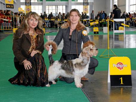 FCI- Weltsieger und anschließend Bester der Rasse (BOB) mit der Petit Basset Griffon Vendéen Hündin „Eine wie Keine vom Esculap“ auf der World Dog Show 2006 in Poznàn in Polen, ehemals Posen, von fast 50 Hunden. |