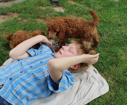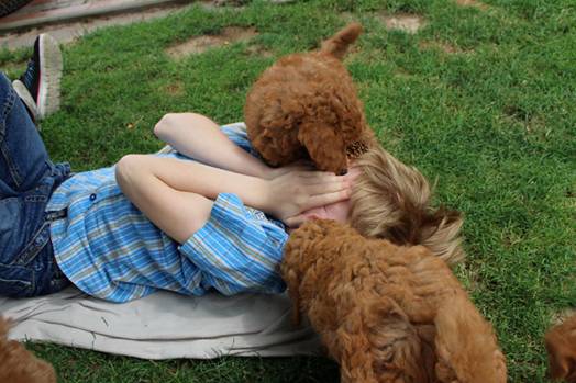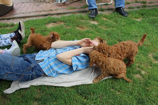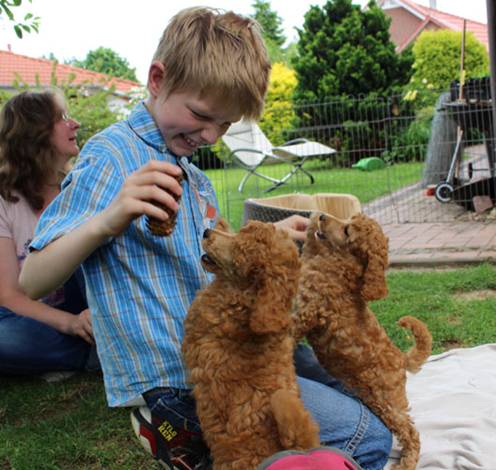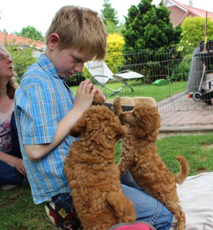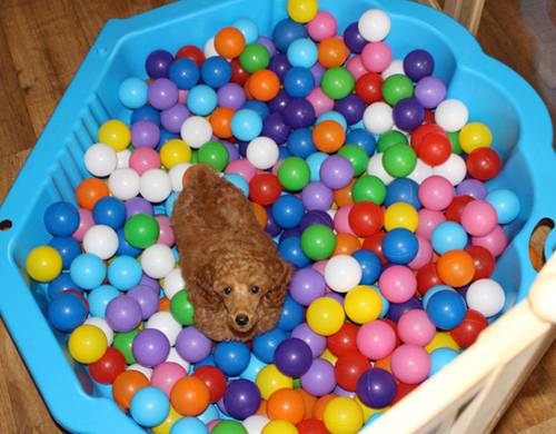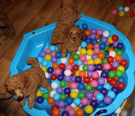...welches regelmäßig „leergespielt“ wird und die Ziehmama darf dann alle Bälle wieder einsammeln und „aufräumen“. Und natürlich Prägen wir unsere Welpen möglichst positiv auf Kinder. Da ich selbst keine habe, muss ich mir immer welche „ausborgen“, aber das hat bisher immer geklappt. Na klar, denn wenn man süße kleine Hundebabies besuchen darf, dazu sagt kein Kind „nein“ :-) Und Attacke!!!! : |