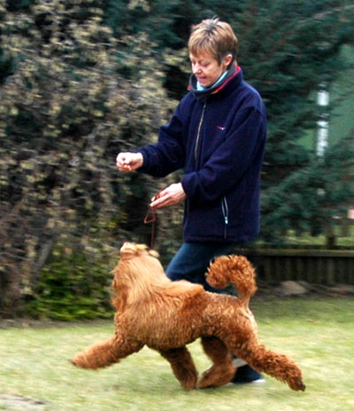 Hier macht Bronco Ringtraining mit Frauchen. Das macht ihm sehr viel Spaß. Here Bronco makes training for shows with mummy. As you can see, he has a lot of fun.