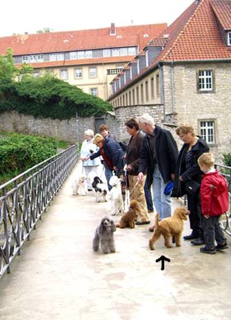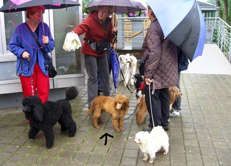 Hier ist sie in der so genannten „Aktivgruppe“ zu sehen, die ihre Unternehmungen überwiegend außerhalb des klubeigenen Geländes vornimmt. Here you can her in the so called „activ– group“, who do their activities predominant out of the area, which belongs to the poodle club. |
