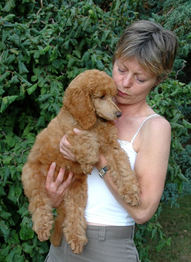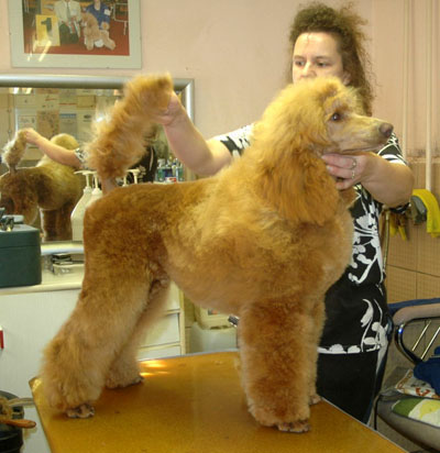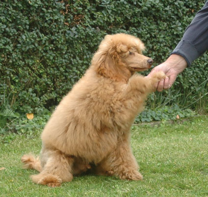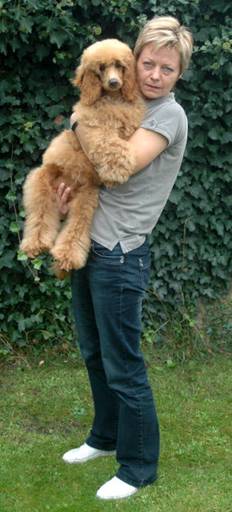 Er trägt die Ausstellungs– Schur, die Bronco hervorragend kleidet. Wie man sieht, ist er ein prächtiger Junge geworden. He is scissored in Show– Trim, which suits him very much. Like you can see, Bronco became a great boy. |