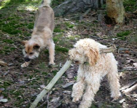 „Im Wald habe ich viel Spaß mit meiner Freundin Bobby.“ „I have a lot of fun in the woods with my friend Bobby.“ |