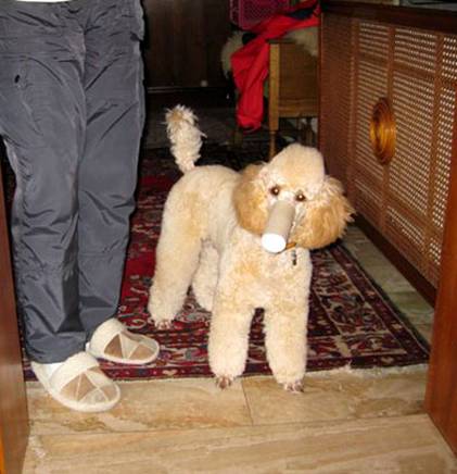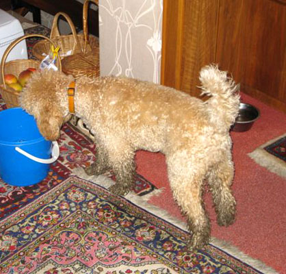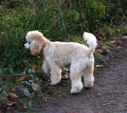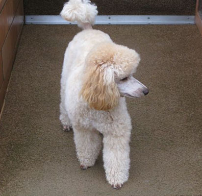 Sie könnte fast schon als Black and Tan Pudel durchgehen, nur mit umgekehrter Zeichnung. You even could almost think that she is a Black and Tan Poodle, only the colours are reverse. |