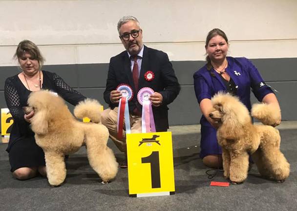 Erneut Jugend Best in Show & Reserve Best in Show in Ilmenau (28.04.2019) L‘Amour (L‘Amour Toujours Esculap Surprime) hat einen Lauf. Sie gewann auf der Pudel Spezial Zuchtschau in Ilmenau unter der Tschechischen Pudel Spezialzuchtrichterin Renata Smyckova erneut das Jugend Best in Show und in guter Konkurrenz sogar noch das Reserve Best in Show!!! |