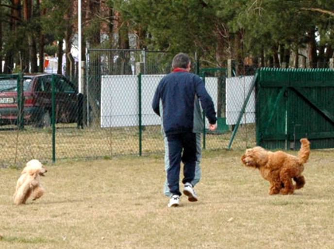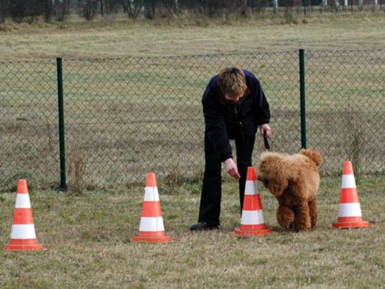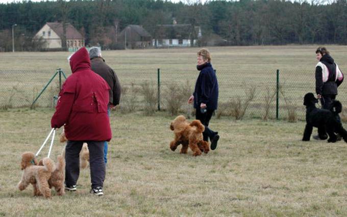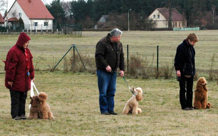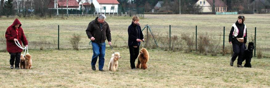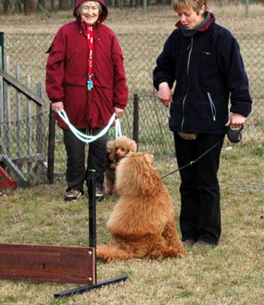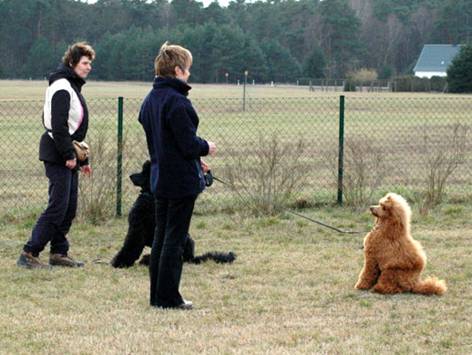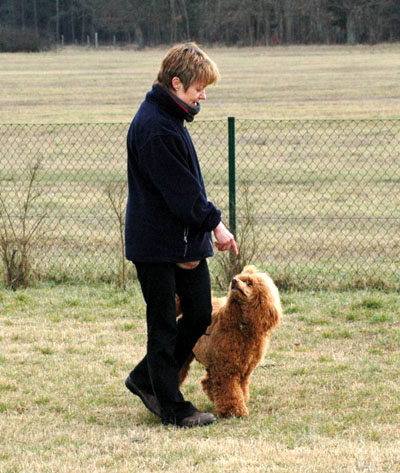 Hier sehen Sie Bronco bei Übungen auf dem Pudelplatz. Er ist sehr schön auf Frauchen konzentriert. Here you can see Bronco while training on the poodle area. He is very good concentrated to his „mummy“. |