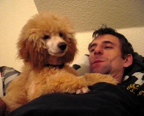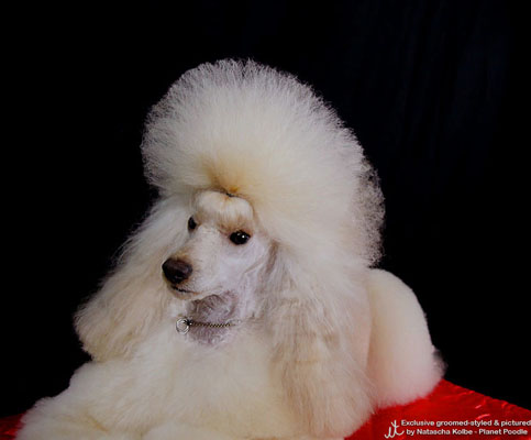 I baught Lilli because of her black mother. I already thaught myself about crossing in black medium poodles to get true fresh bloodlines, because of the small genpool by the apricot. Nearly all apricot are related to each other, even if it is sometimes very distant. Her father is out of very interessting finnish and russian bloodlines.