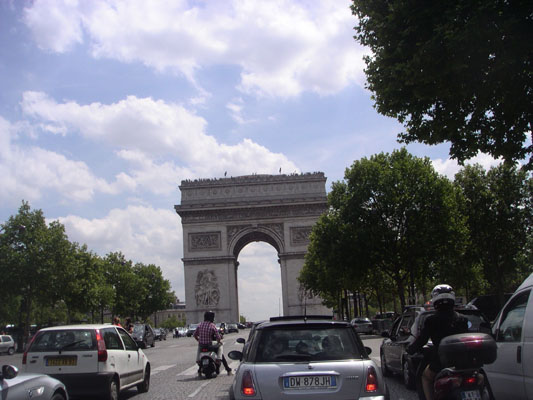 ...wir fuhren zum Arc de Triomphe, mit großem, mehrspurigem Kreisverkehr ohne Markierungen oder Spurführungen und trotzdem floss der Verkehr tadellos… bemerkenswert… aber in Deutschland undenkbar! ...we drove to the Arc de Triomphe with big, multitrack roundabout without any marking or guidance and nevertheless the traffic goes well… remarkable… but unthinkable in Germany! |