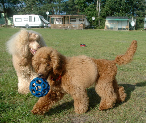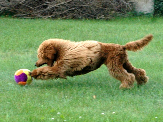 Er ist ein sehr apportierfreudiger Hund, wie es sich für einen Pudel auch gehört! He loves to retrieve, like it be proper for a poodle! |