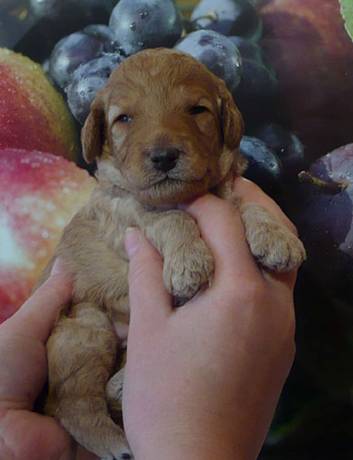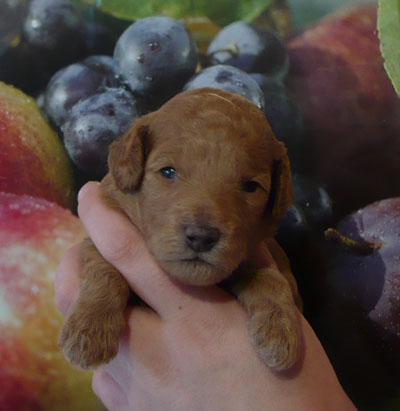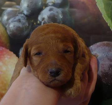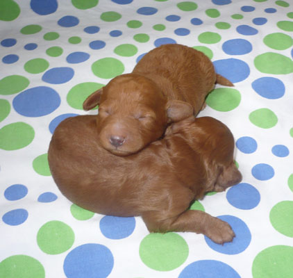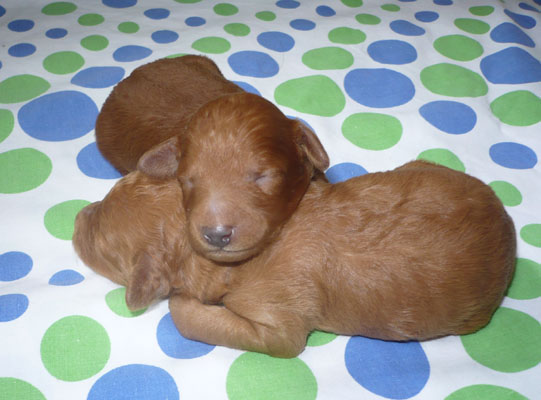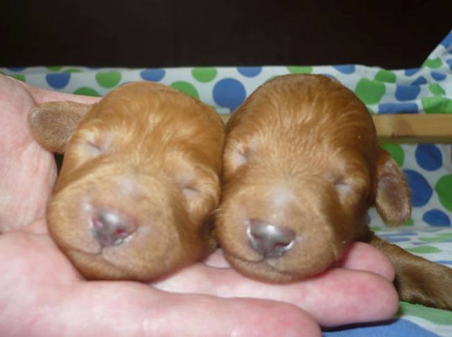 16 days old The puppies have just opened their little eyes and ears begin to open, too. |