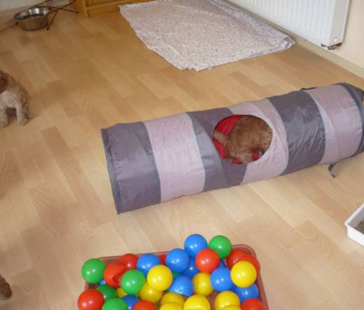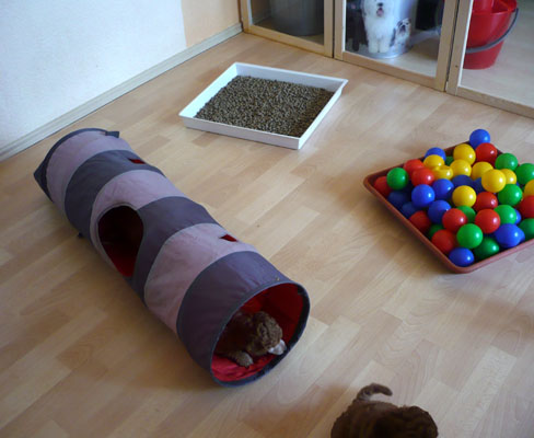 The outlet inside the house is very nice, too. With balls bath, crackle tunnel, rattle box, ringing ball, squeaky dachshund and straw pellet toilet the outlet stimulate on several noises, grounds and situations: |