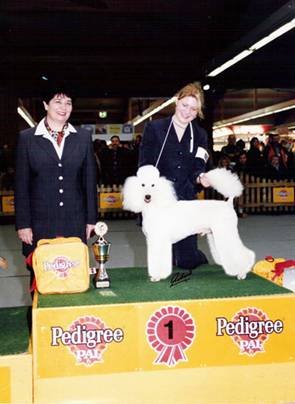 I did extra, in addition to the "normal" dog exhibiting, where the quality of the dogs is more important, very active “Junior-handling", a discipline in which you have to learn and exercise the presentation of the dogs in the show ring. So there is the Handler and the presentation in the foreground. In Kassel, 1999, I even reached a 1st place in the finale from Germany. There were invited the best 20 junior handlers from all over Germany. The winner was flying to Cruft's Dog Show in Birmingham to participate at the World competition, the World Finale, - a truly unique experience! |