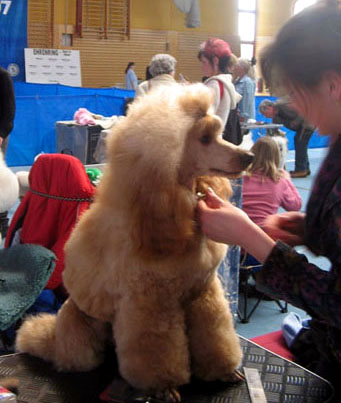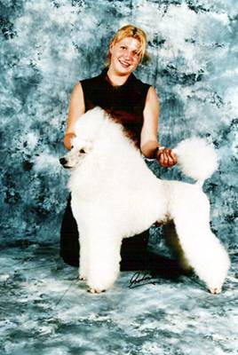 My dream grew up with the years steadily and constantly: I fervently wished I had my own dog to love, to show and - my biggest dream - for breeding. Unfortunately, my parents allowed me neither to own a dog nor to breed. My longing I could only realize with the poodles from my grandparents and with the help of dog-books. I visited with my grandmother every holiday and I wanted to go with her dogs for a walk and would like to do all the other tasks of “ensuring caring ". I was also driven to almost every dog show in which my grandmother had shown her males. So I could soon be part of presenting them by myself. I was also busy with everything, which somehow had to do with dogs and I read standard books about the poodle, the right presentation in the show ring and even about dog breeding. My illusion of the ideal poodle grow up further and further. |